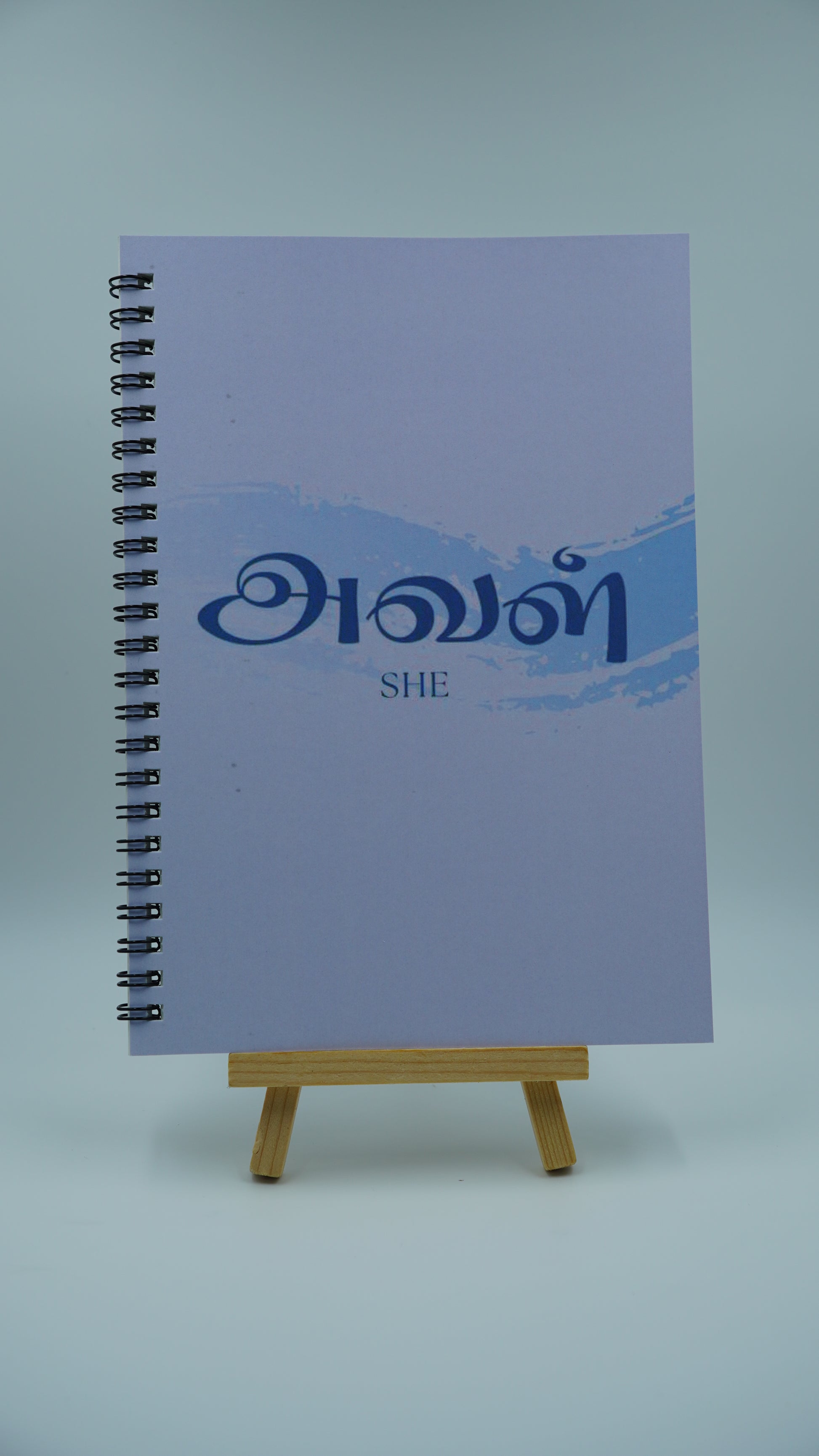 Celebrate strength, identity, and simplicity with this A5 notebook featuring the Tamil word அவள் (She). A perfect blend of modern minimalism and cultural touch, this pocket-sized notebook is great for jotting ideas, notes, or personal reflections. Thoughtful stationery for everyday inspiration.