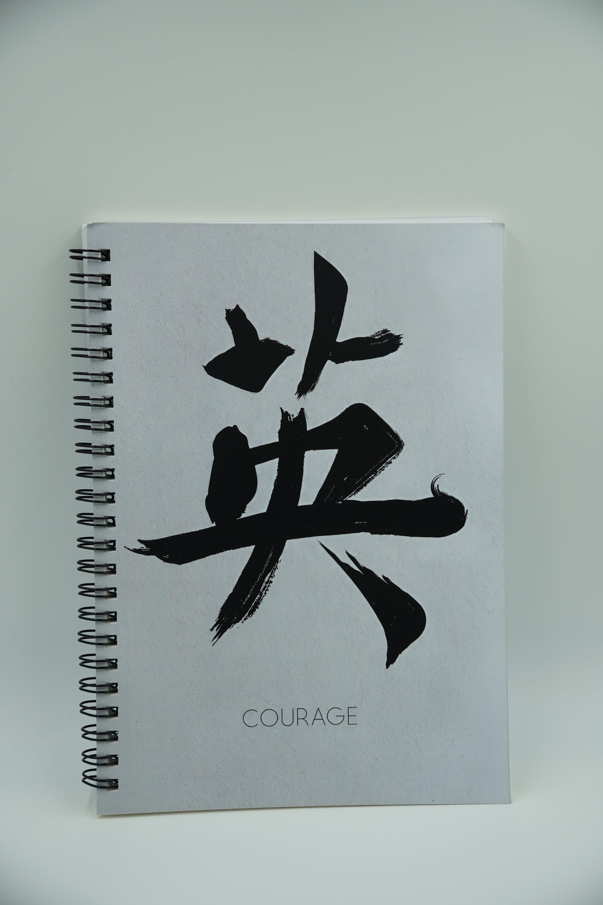 Empower your space with timeless elegance and inner strength. This A5 notebook captures the Japanese Kanji for “Courage” in bold, hand-brushed black strokes—set against a clean, minimalist white background. A silent but powerful reminder that bravery begins within.