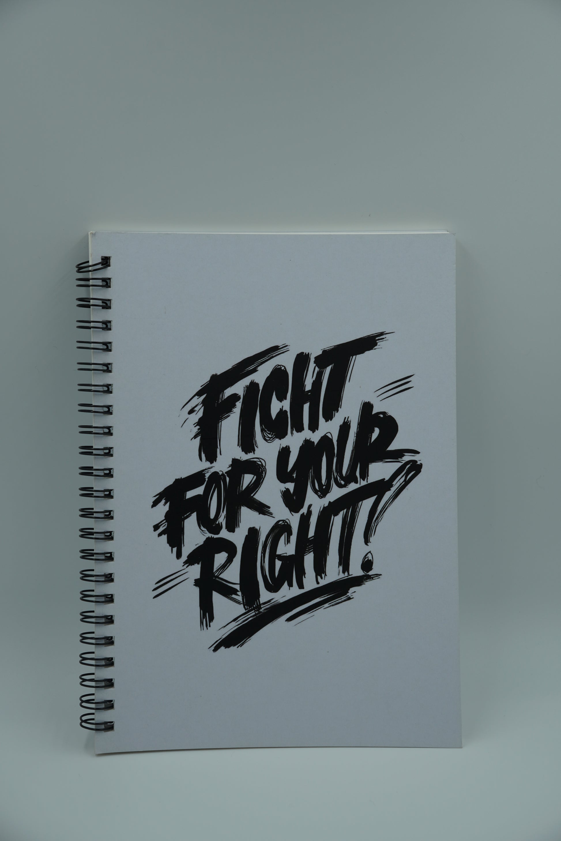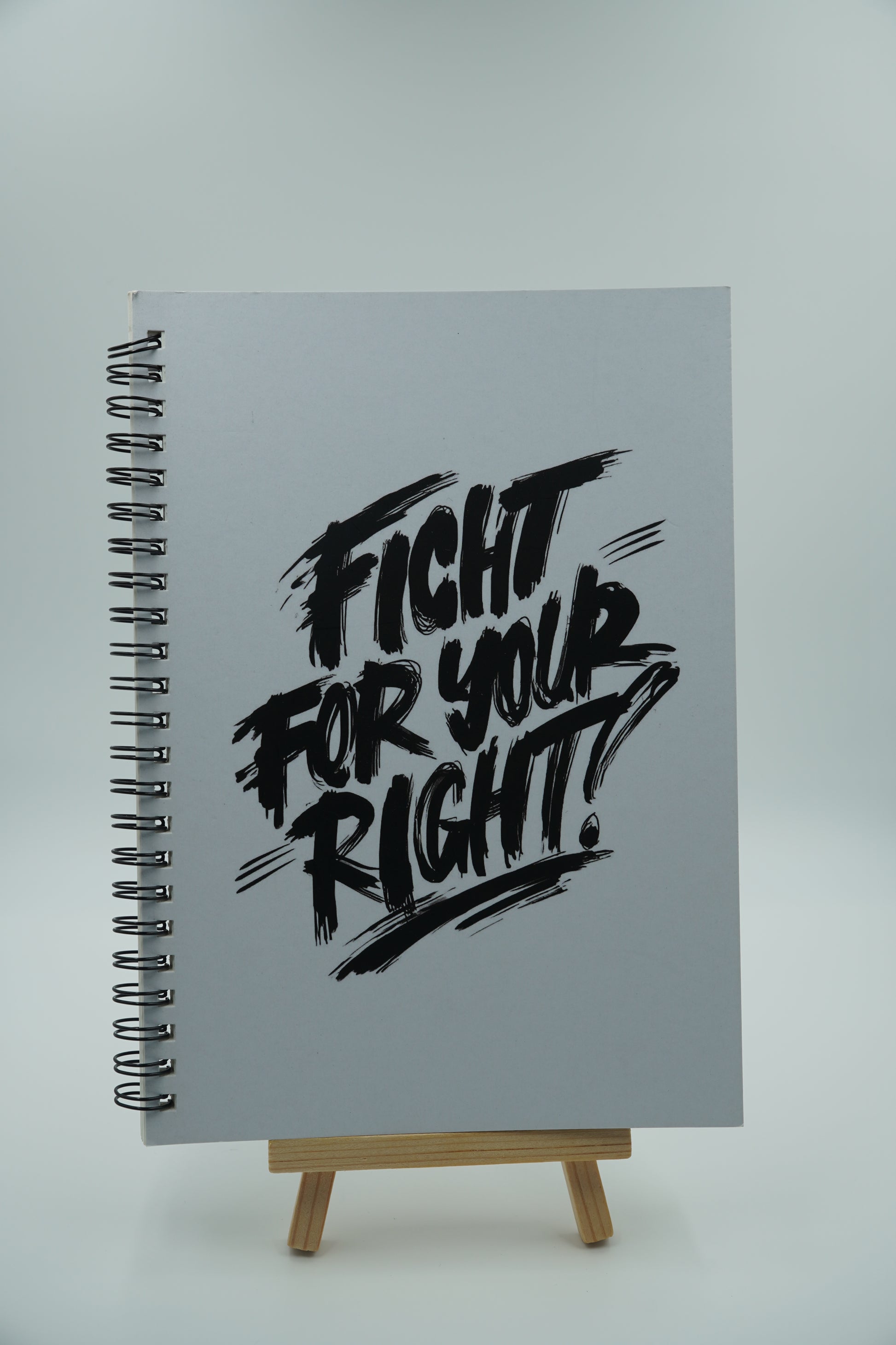 Make a fearless statement with this high-impact "Fight For Your Right!" A5 notebook. Designed with powerful brush-stroke typography on a clean white canvas, this poster channels energy, rebellion, and personal power into any space.