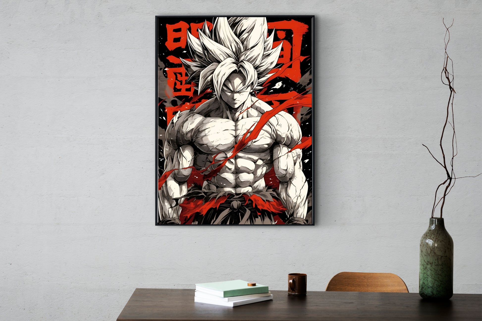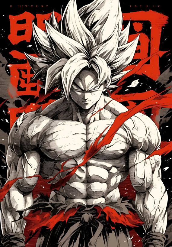A powerful A4-sized wall poster showcasing Goku in his iconic Super Saiyan form from Dragon Ball Z. With a striking black-and-white design enhanced by fiery red accents, this poster captures Goku's fierce determination and legendary aura. A perfect addition to any anime fan's space. (No frame included.)