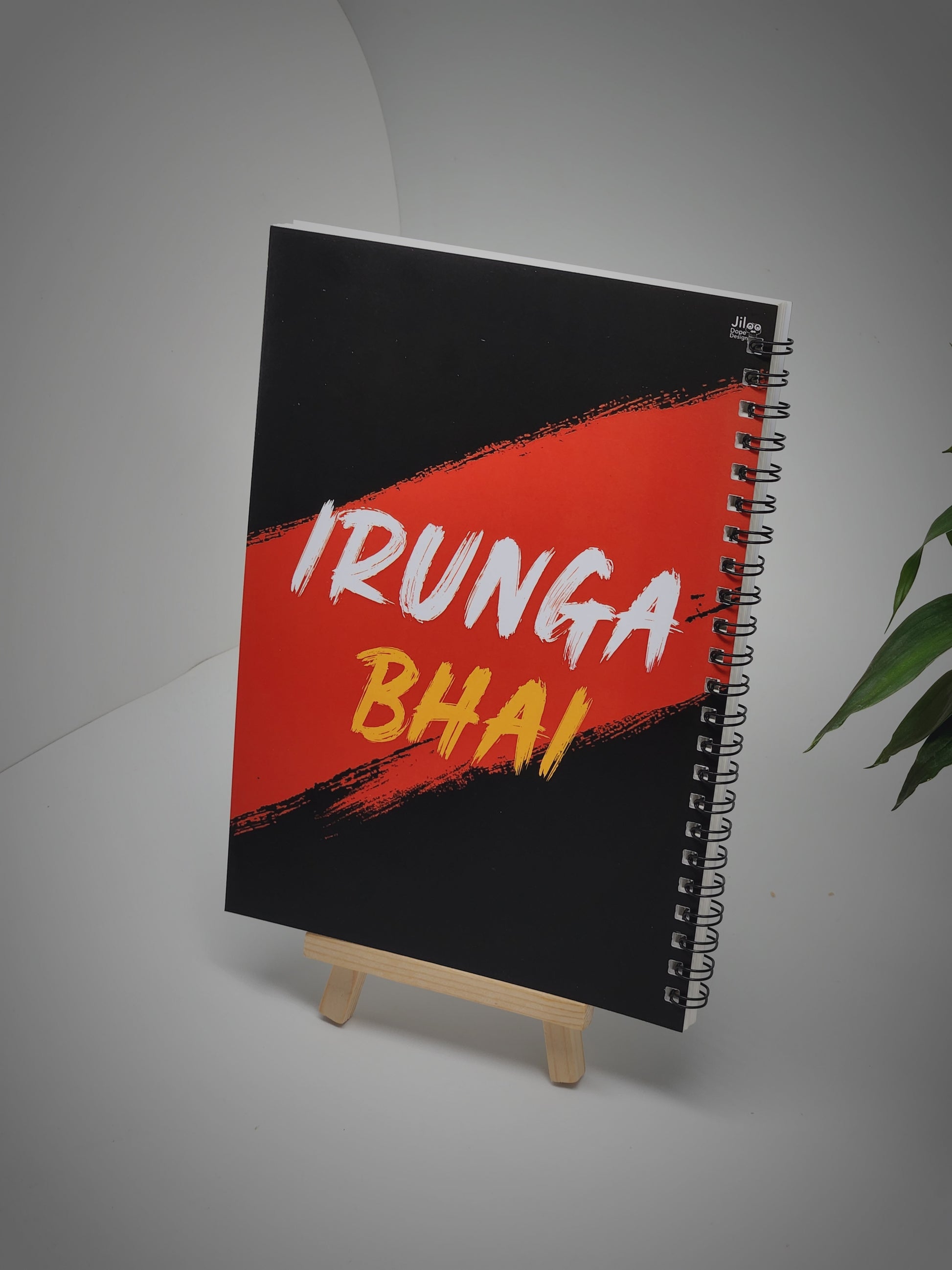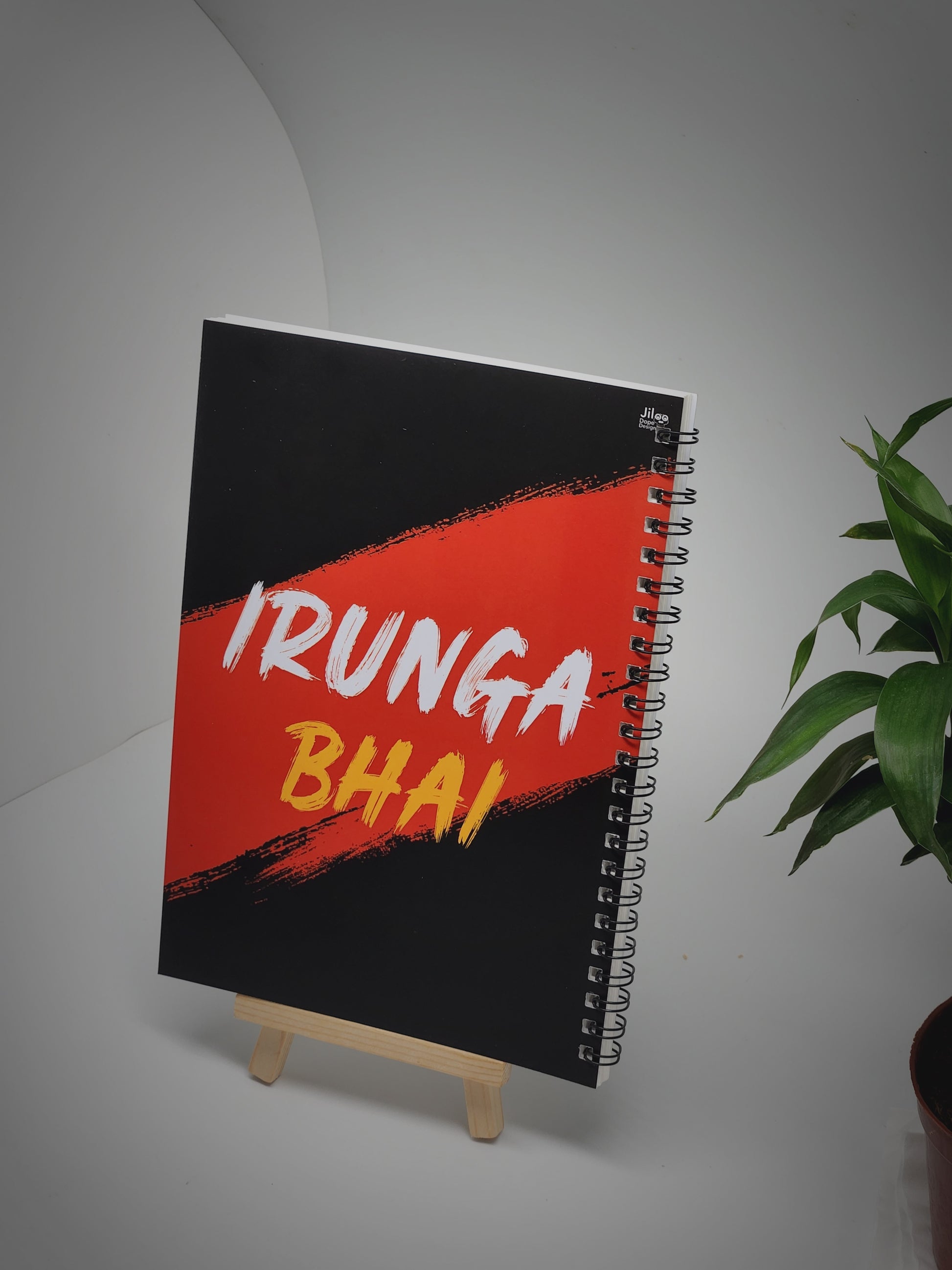 Celebrate the wit and charisma of Irunga Bhai with this A5 Spiral Notebook, featuring iconic dialogue-inspired designs. With a stunning matte-finish hard cover, this notebook is a perfect blend of attitude and functionality for fans who love bold statements and stylish stationery.