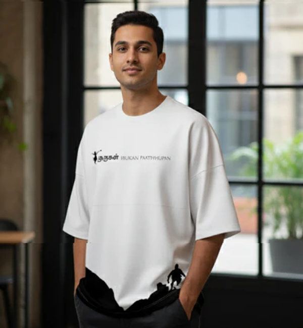 Murugan Paaththupan Pilgrimage Tee - Minimalist Black & White Graphic Over-sized T-Shirt