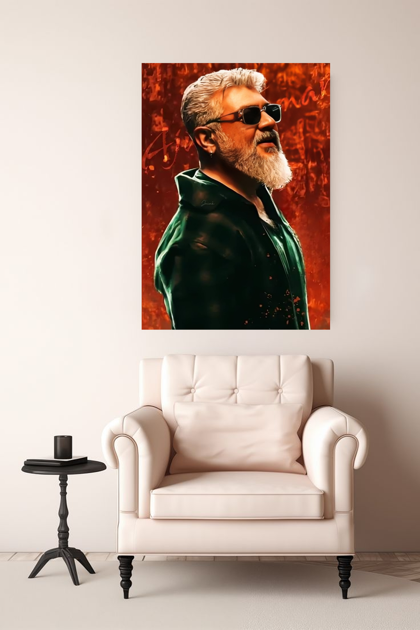 The star look! High-definition A4 sticker poster featuring the iconic style and charisma of actor Ajith Kumar (Thala). A powerful addition for fans of Tamil cinema. Easy peel and stick. Limited stock