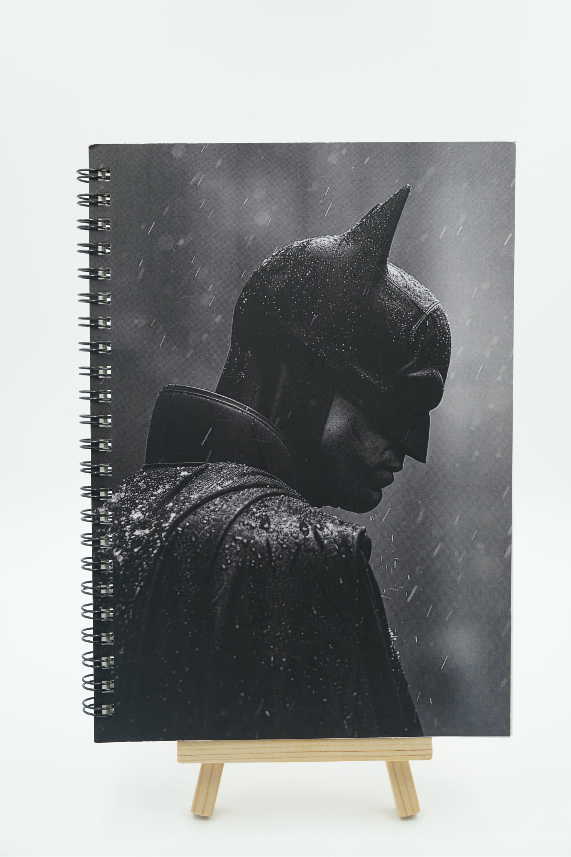 Drenched in shadows and raindrops, this A5 matte-finish notebook captures the raw essence of The Dark Knight — brooding, relentless, and iconic. With stunning black-and-white contrast and cinematic rain streaks, this piece isn’t just a tribute to Batman… it’s a symbol of silent strength and unwavering justice.